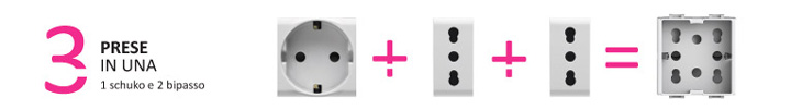 A interrompere questo trend debutta ora sul mercato un nuovo tipo di frutto, compatibile con le più diffuse serie civili, che in soli due moduli incorpora tre prese distinte: una presa SchuKo e due prese 10/16 A. Il prodotto si chiama Side, si installa anche su punti luce Bticino™, Vimar™ e Gewiss™ ed è prodotto e commercializzato da 4 Box, azienda italiana che fa dell’innovazione la propria mission. Infatti, avere tre prese in soli due moduli permette di ottimizzare l’utilizzo della scatola da incasso per ottenere più funzionalità e più comfort.