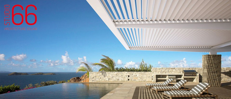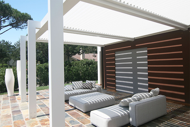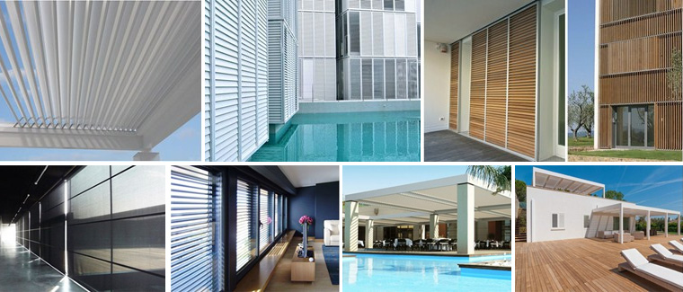 BLADE 160 è una copertura frangisole a completa tenuta d'acqua che può essere applicata anche su strutture perfettamente orizzontali.