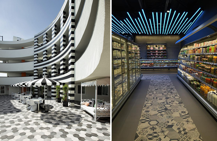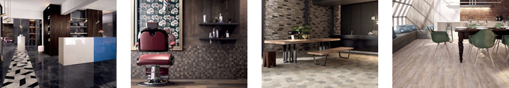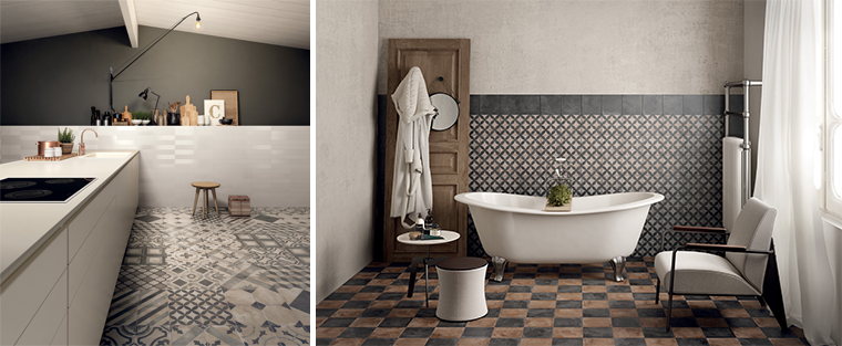 Le decorazioni, sia su 20x20 che esagona, spaziano dal geometrico al floreale stilizzato per creare ambienti molto decorativi ma anche minimali. I pattern possono essere mixati fra loro permettendo di creare infinite combinazioni.