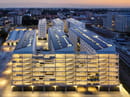 AI Design firma il nuovo edificio per uffici di otto piani nel quartiere Karlín di Praga: una struttura compatta rivestita in vetro con schermature come nuvole