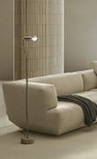 Forme monolitiche e leggere si articolano nel sistema di sedute Loungescape, personalizzabile con i tessuti e le pelli della collezione Flexform