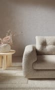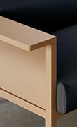 La collezione Borealis si sviluppa attorno a un telaio in rovere a vista che racchiude gli elementi imbottiti. La geometria essenziale ne definisce l’identità: precisa, architettonica, equilibrata