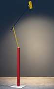 Declinata in versione da tavolo e da terra, la nuova lampada è caratterizzata da un sistema cinematico brevettato che consente di orientare la luce con precisione