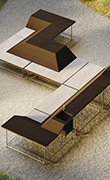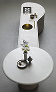 CREST trae ispirazione dalle linee di un paesaggio naturale per ridisegnare una nuova fruizione degli spazi esterni attraverso un insieme di sedute, chaise longue, tavoli e lavabi