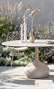 Uno stelo esile e slanciato dalle forme fluide: il tavolo Sean si declina in una nuova versione pensata per spazi esterni