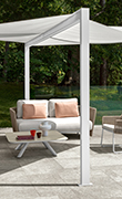 Dinamica, scultorea e poco ingombrante, la nuova struttura ombreggiante si apre con un semplice sistema a compasso
