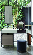Composto da un lavabo in ceramica e un piano d’appoggio, il mobile lavabo Narciso Vanity include un elemento Make Up integrato, dotato di specchio e porta oggetti