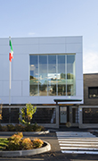 Concepito come un grande cubo bianco luminoso e sospeso, il nuovo volume in pietra acrilica si integra nell’architettura preesistente