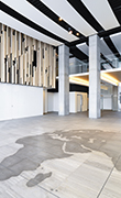 Le superfici della collezione Marte creano un intarsio ottenuto tramite getto d'acqua. L'intervento alla Hokkaido University of Science