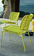 I divani Easy, le sedute Yo! e i tavoli Dorian sono realizzati con materiali idrorepellenti e resistenti alle macchie e ai raggi UV