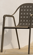 Le sedute, i tavoli e i lettini in versione tortora e fango, due tonalità naturali e senza tempo