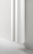 Il corpo scaldante diventa colonna architettonica dello spazio abitativo, tra aperture e luce, materia e colore