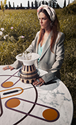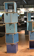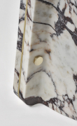 La collezione New Atomic Age è concepita come un viaggio nel tempo. Simboli neo-tribali e post atomici diventano intarsi di resina su superfici in marmo