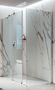 Funzionale e minimal: il sistema salvaspazio composto dal box doccia Open e il soffione a soffitto Supioni
