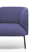 Poltrone lounge, sedute e panche interpretano le tonalità fluide e dinamiche del Very Peri