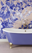 La vasca in ghisa Admiral e la carta da parati Botanica Makeup reintepretano le sfumature del blu pervinca Very Peri