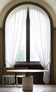 I tavoli Creso e Serenissimo e il tavolino pieghevole Florian dialogano con gli spazi anni '30 di Villa Necchi Campiglio in un inedito progetto fotografico