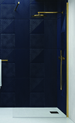Calde tonalità per il sistema senza porte formato da elementi fissi in vetro temperato e profili a cornice