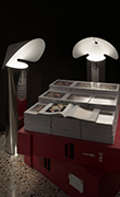 Il progetto espositivo curato dallo Studio Bellini include il programma di proiettori a binario universale Camera e la lampada da terra Chiara