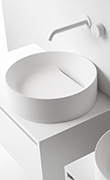 Tutti i prodotti bagno sono disponibili nella versione in solid-surface, materiale eco-sostenibile, antimicotico ed autopulente