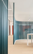 La nuova soluzione in legno disegnata da deamicisarchitetti riconfigura gli spazi open, dalle aree attesa ai workspace