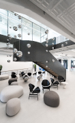 Uffici, sale conferenza e spazi comuni ospitano arredi iconici e senza tempo, dalla seduta 214 allo scrittoio S 285