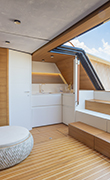 Versatile, impermabile e termoformabile, la superficie Nordic White dà vita al corner bar dell’area lounge