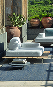 Il nuovo sistema outdoor firmato da Ilaria Marelli è composto da una base con doghe in teak e un insieme di cuscini da posizionare liberamente