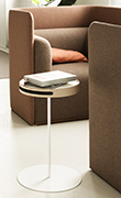 Realizzati in altezze diverse e con piani sovrapponibili, i tavolini creano composizioni grafiche di forme e di colori in coordinato o a contrasto con gli imbottiti