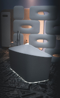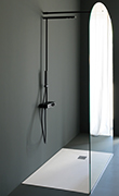 Personalizzabile nelle dimensioni, la superficie è realizzata in e-gres, materiale duttile, antiscivolo, antimacchia e resistente agli usi più frequenti
