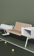 Una seduta da arbitro, tavoli bassi e una panca per giocatori: Ace si ispira al mondo del tennis. La videointervista con il designer francese