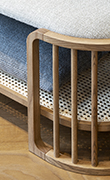 Linee organiche e forme accoglienti ispirate ai paesaggi mediterranei: il divano Juno, la poltroncina Beat e il tavolo Gutta