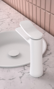Il nuovo miscelatore veste la stanza del benessere con geometrie morbide e accoglienti