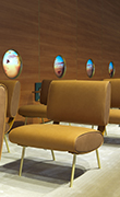 Un interno di un aereo realtà e fantasia: il progetto celebra la poltrona Round D.154.5 di Gio Ponti e la creatività degli anni ‘60