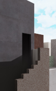 Pulizia formale, toni caldi e volumi monomaterici in un sapiente gioco di vuoti e pieni