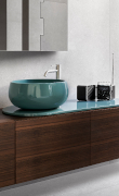 Caldo e naturale, il legno degli inserti porta la natura nell'ambiente bagno