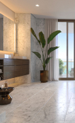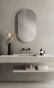 Un dialogo virtuoso tra superfici di rivestimento e arredo bagno in gres porcellanato