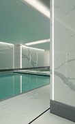 Le lastre Bianco Calacatta Shiny e Thassos Soft rivestono la zona SPA del complesso residenziale Southbank Place, di fronte al London Eye e a Westminister
