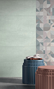 Un equilibrato mix and match di stili e colori con superfici effetto cemento ed effetto graniglia