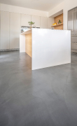 Il pavimento in cemento resina Microverlay veste la zona giorno e le sale da bagno