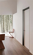 Il telaio completamente a vista crea un senso di profondità e un invito a 'varcare la soglia': un nuovo modo di immaginare la porta