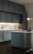 La collezione completa veste cucina e soggiorno con le venature del legno, le sfumature del marmo e i riflessi del vetro