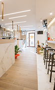 Superfici effetto marmo rivestono gli interni e gli arredi dello storico Drita Kafè a Piana degli Albanesi