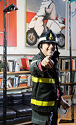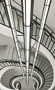 Una struttura a base triangolare in alluminio nero ispirata alla classica scala aerea telescopica dei vigili del fuoco