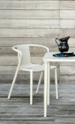 L'iconica famiglia di tavoli e sedie in polipropilene arreda gli spazi interni ed esterni con leggerezza e versatilità