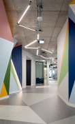 Tra geometrie, cemento e colore, il sistema Colibrì illumina i corridoi degli uffici