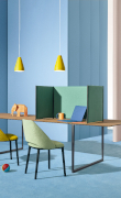 Il tavolo Toa e il divisorio fonoassorbente Toa Folding Screen disegnati da Robin Rizzini per Pedrali