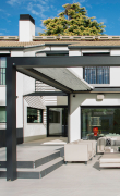 Il fascino 'brutale' del calcestruzzo industriale riveste interni e patio esterno
