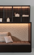 Paglia intrecciata e cromie avvolgenti. Nuovo look per il sistema di librerie e pareti attrezzate firmato Piero Lissoni