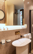 Design minimalista, anima retrò. La collezione Cleo 84 arreda i bagni della storica villa